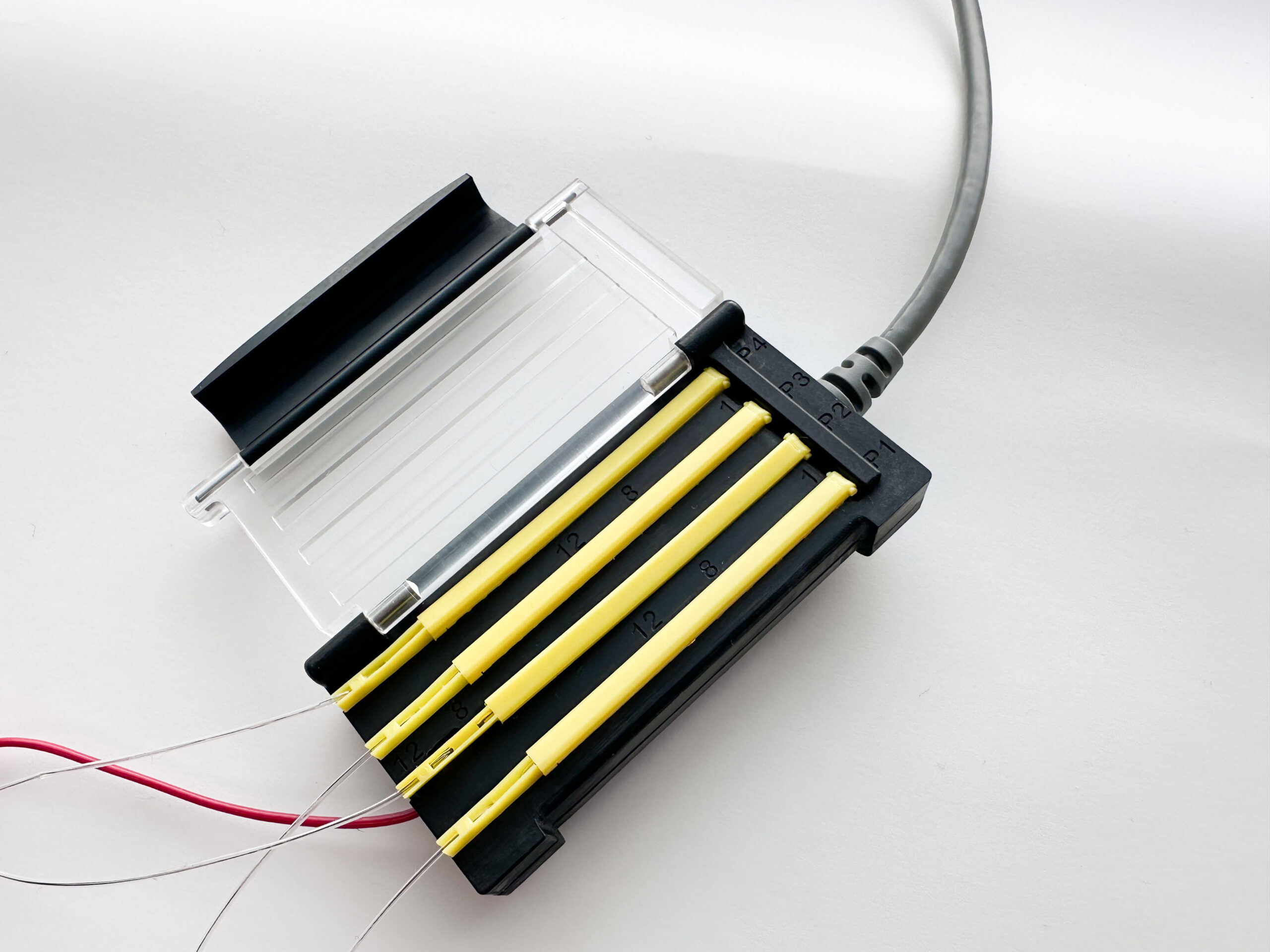 Engineered for sub-chronic and acute recording, our NeuroSnap headstages combine a lightweight profile with robust construction. Weighing just 1.9 oz (53.86g), 75% lighter than Cabrio 16-channel adapters, it fits unobtrusively under the patient’s headwrap and ensures maximum comfort during extended clinical use. Its compact design does not compromise on resilience however, ensuring reliable performance during severe seizures.